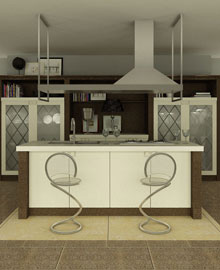 加拉斯拉: 風和日麗的春光,領(lǐng)略熱帶海灘的情趣。樹林蔥郁,風景秀麗,這是適合熱情奔放的你所向往的生活。獨創(chuàng)性的弧型臺面造型,另類的吧臺,明亮透明的吊柜。設(shè)計師將這些材料完美的結(jié)合,并注入環(huán)保、低碳與現(xiàn)代設(shè)計等元素,促使你的廚房亮麗,以及施展手藝的空間。