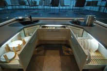 在2011年上海廚衛(wèi)展展會(huì)上志邦廚柜展示自主原創(chuàng)設(shè)計(jì)的超現(xiàn)代主義概念廚房“π-Freedom”,獲得了行業(yè)和參展觀眾的最多關(guān)注,搶盡了風(fēng)頭。