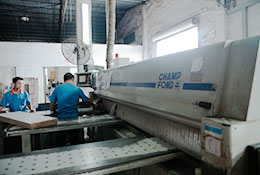 使用臺灣進(jìn)口長風(fēng)電子開料鋸,全自動(dòng)化電子鋸,根據(jù)終端ERP系統(tǒng)傳回的數(shù)據(jù)進(jìn)行分解,實(shí)現(xiàn)柔性切割,實(shí)現(xiàn)信息化操作生產(chǎn),人員操作簡單,誤差保證在千分之一以內(nèi)。每一塊板材都會(huì)有詳細(xì)的訂單信息,包括住址、戶型、尺寸、顏色、類型等信息,有專人負(fù)責(zé)全程跟蹤。