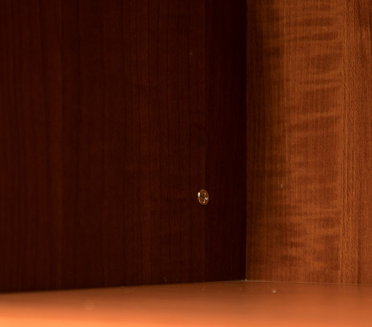“錦城印象”采用純天然進(jìn)口實(shí)木,健康環(huán)保、經(jīng)典時(shí)尚。由測(cè)評(píng)圖可以看出,整套廚柜板材表層色澤自然、造型獨(dú)特精致,頗具古色古香之感。