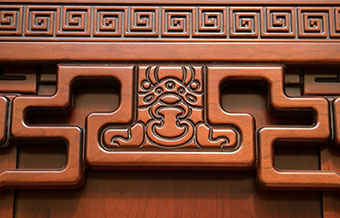 1地柜與吊柜邊緣的回形紋設(shè)計(jì),寓意“萬(wàn)壽無(wú)疆、源遠(yuǎn)流長(zhǎng)”。