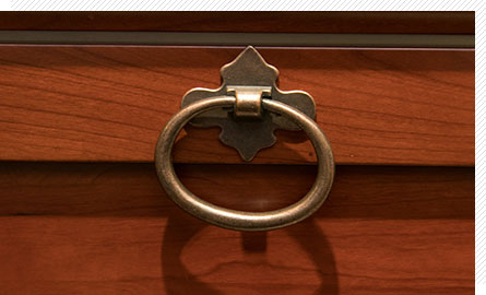仿古銅色拉手,含蓄而不張揚(yáng),與整套櫥柜風(fēng)格相互映襯,更添古典、大氣氣息。錦城印象,獨(dú)特魅力不僅在于目賞,更在于手撫。