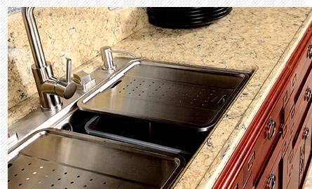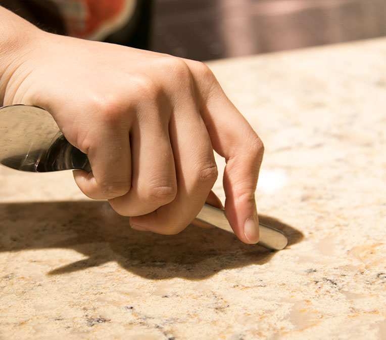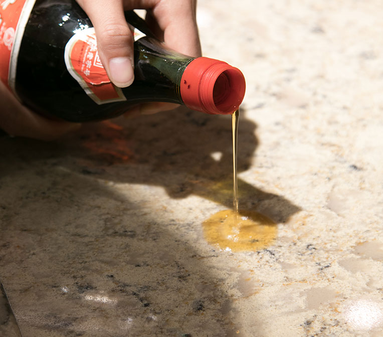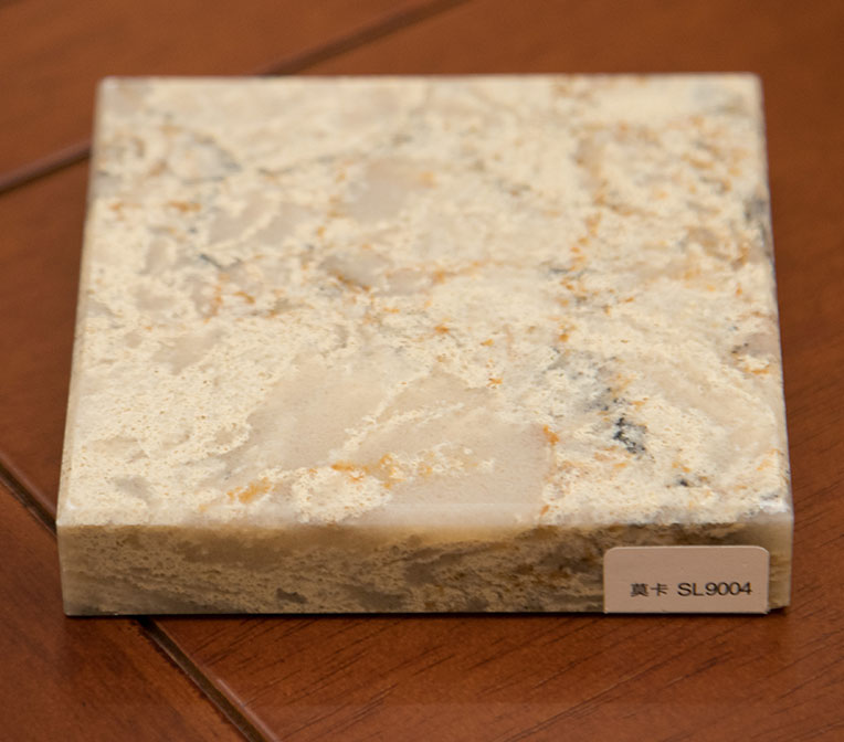 選用進(jìn)口石英石制成,表面看上去具有天然石材的質(zhì)感和光澤。耐磨度極高,甭說(shuō)小磕小碰,就是用刀直接在上面切菜也不會(huì)留下痕跡。而且也很容易打理,若油污、醬油、醋等液體滴在上面,用抹布蘸點(diǎn)水或洗潔精擦洗就可以。