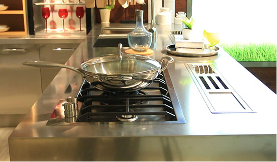 青古銅主色調的設計加上不銹鋼花紋模具壓型,讓原本冰冷的不銹鋼櫥柜表現出古樸的風格。