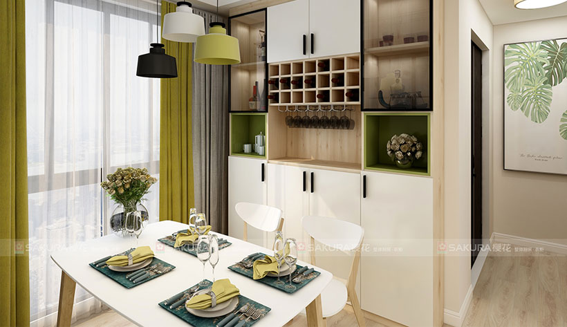 多功能餐邊柜采用半開(kāi)放式設(shè)計(jì),收納/展示兩用,點(diǎn)亮浪漫就餐氛圍。